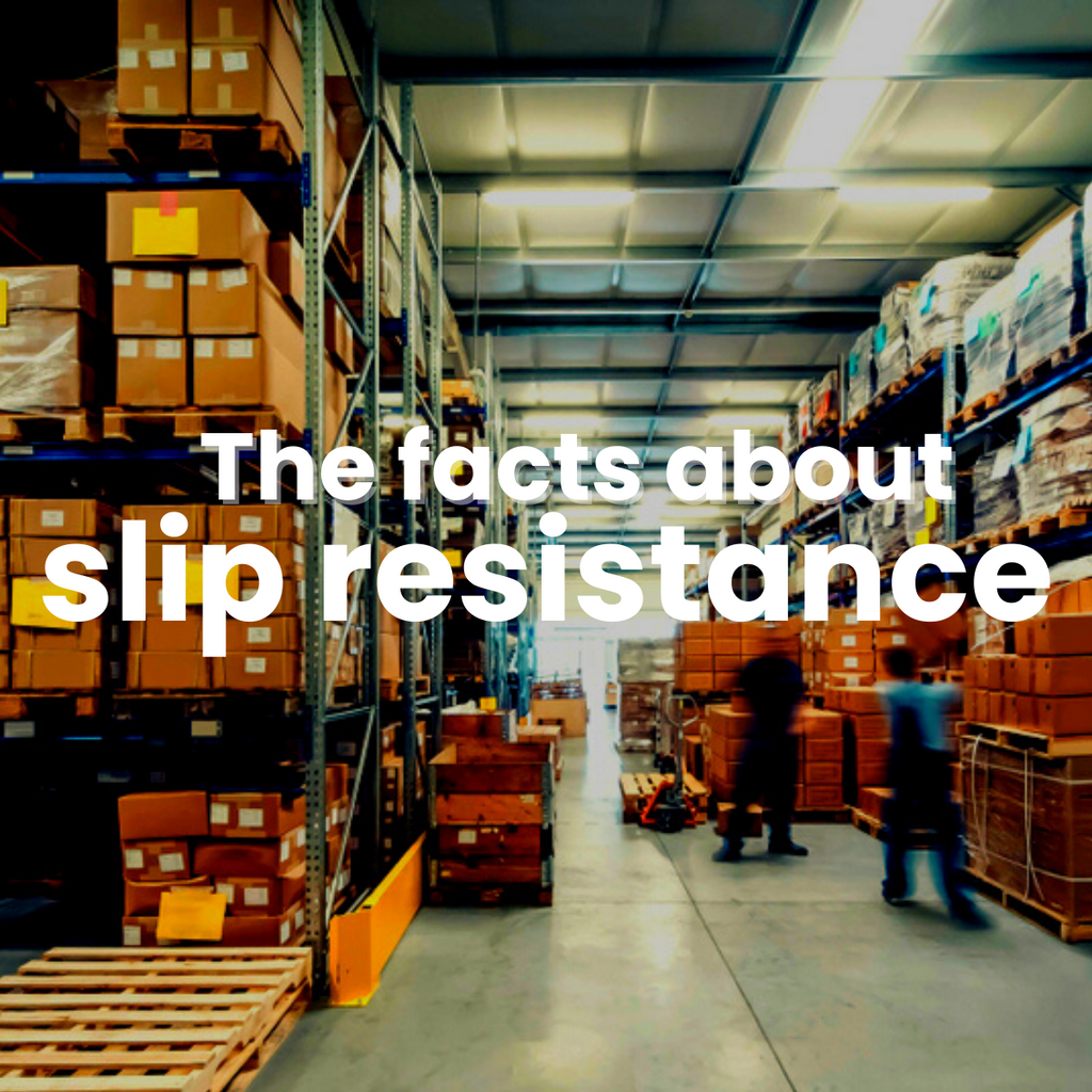 First things first: Slip resistance refers to the amount of resistance the sole of the shoe exerts while moving over the walking surface. It’s measured using the Coefficient of Friction (COF), the ratio between the maximum frictional force that the sole applies and the force pushing the sole across the surface. Slip resistance is measured on a scale that runs from 0.00 up to 1.00, 0.00 being equivalent to a skating rink and 1.00 equivalent to a dry carpet. The higher the number, the greater the slip resistance (but there's more to it, read on).